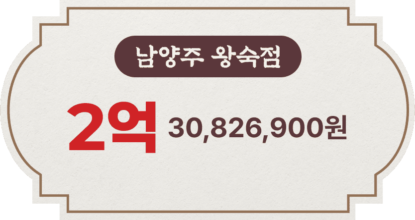 왕숙점 최고 매출 기록 (가맹최고/2021년)